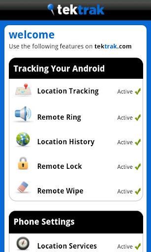 • Locate your device any time. TekTrak will activate the assisted-GPS on your smartphone, and return an accurate location within a couple of minutes.