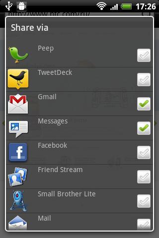 - Share to Multiple Applications at a time: use checkboxes -> tap one of checkboxed elements.