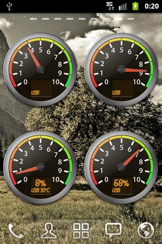 Overview: Beautiful free speedometer (dashboard) battery monitor widget. Battery gauge shows information about battery level indicator, temperature, voltage, status, health, technology. Battery indicator includes battery monitor that shows battery usage history on charts.